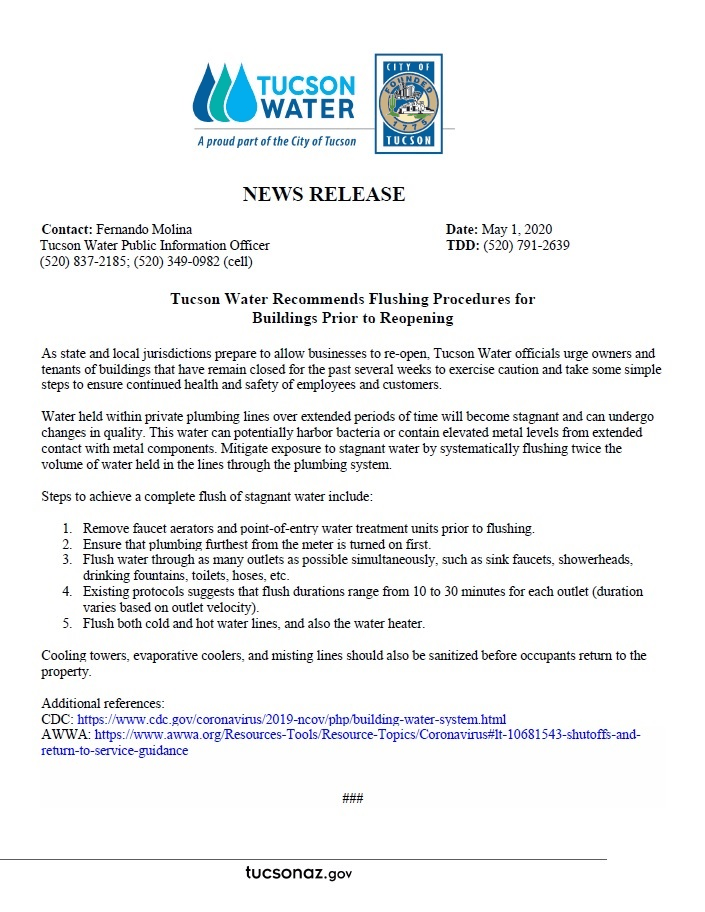 Water is cycled (replaced) every time you use water reducing incidence of stagnation.